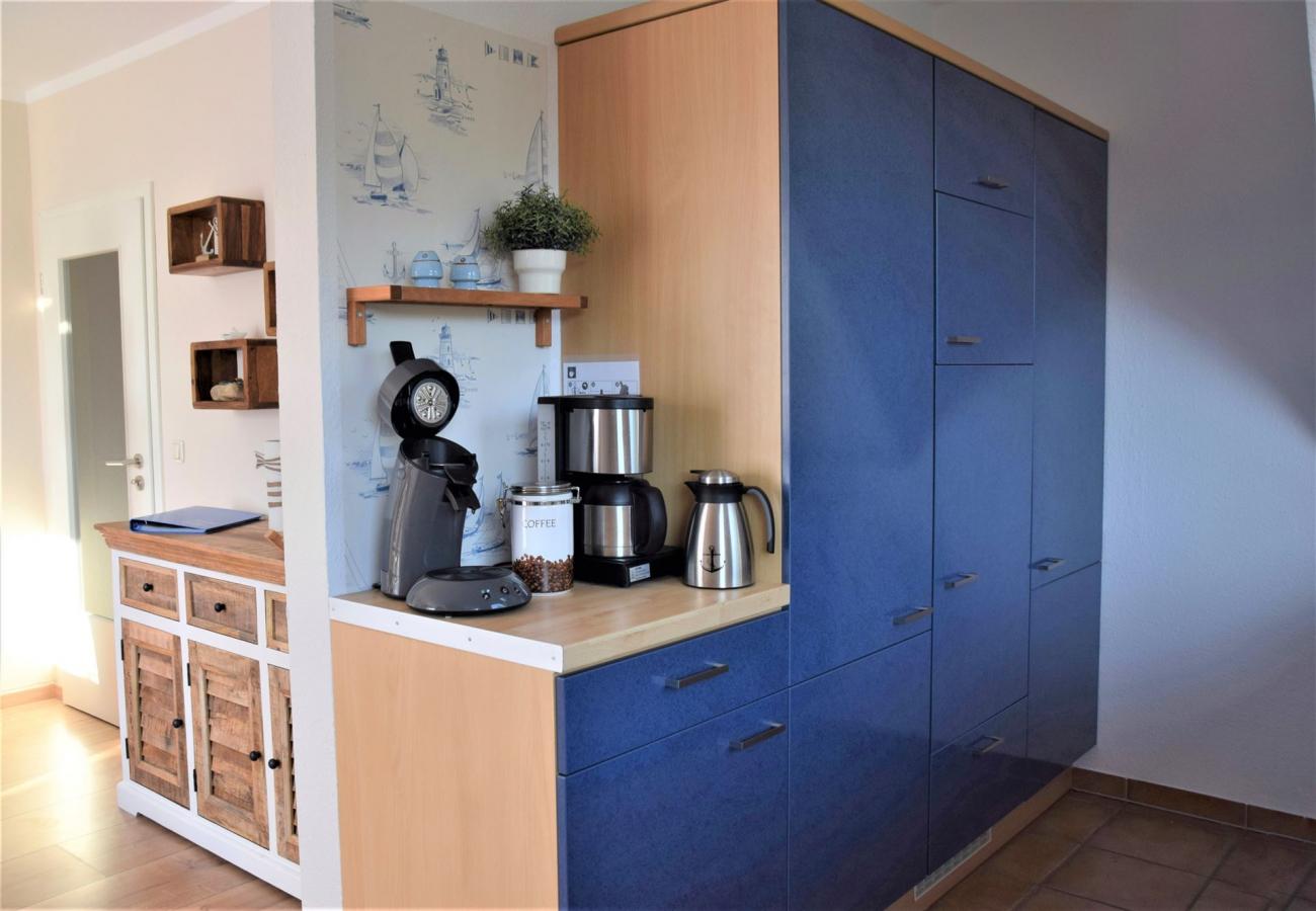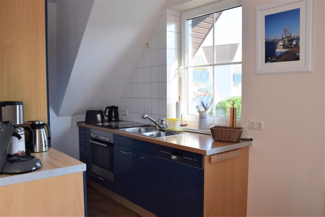offene Küche mit Geschirrspüler, 4er-Cerankochfeld, Backofen und einer Senseo-Kaffeemaschine (Senseo-Kaffeepads bitte selbst mitbringen)